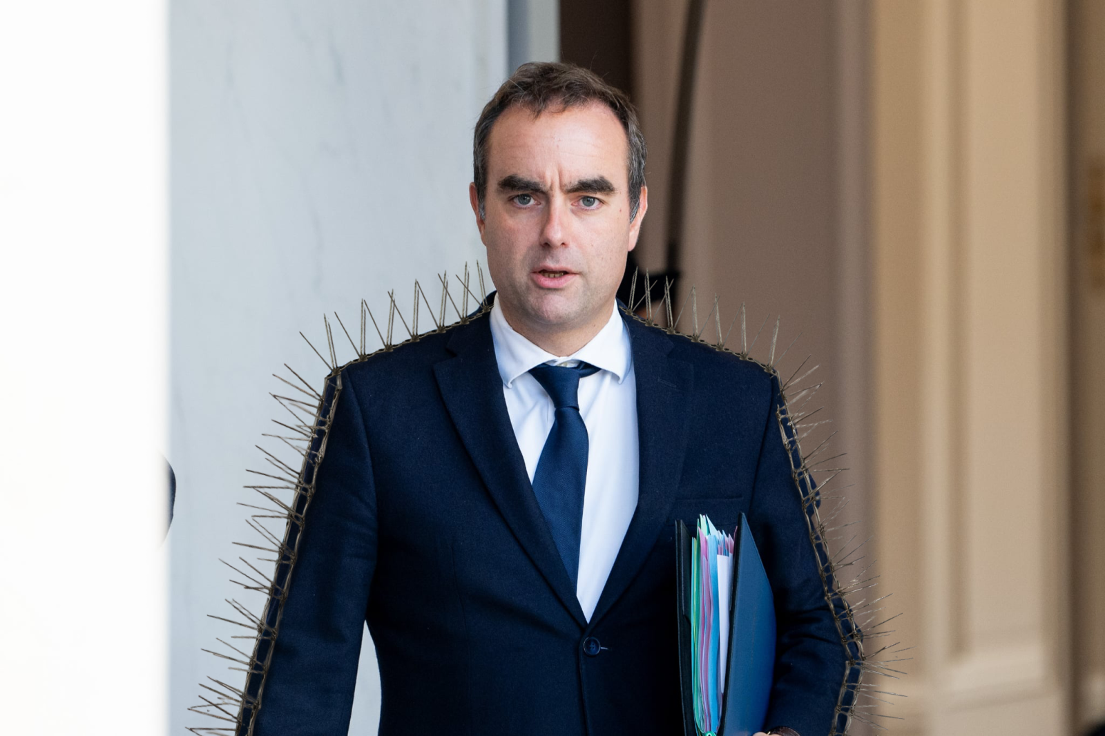 Le premier ministre Sébastien Lecornu arborera désormais des pics en métal acérés sur la tête et les épaules afin d’empêcher les volatiles de se poser sur lui.